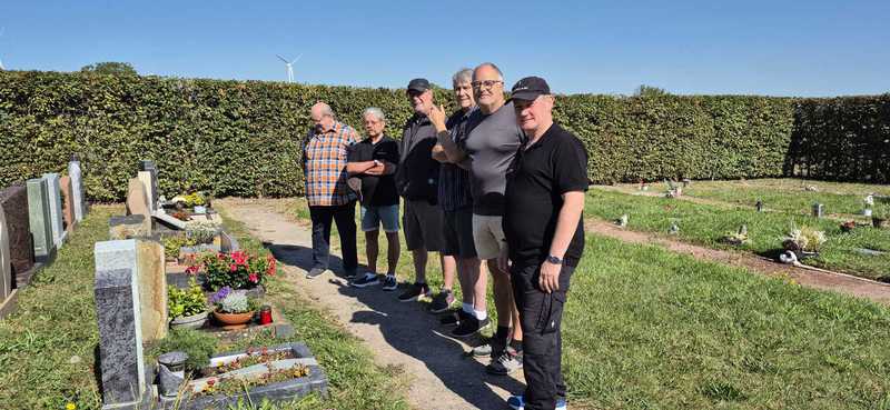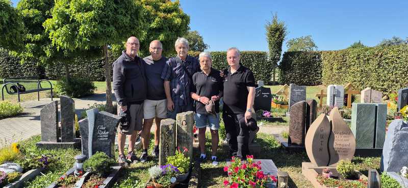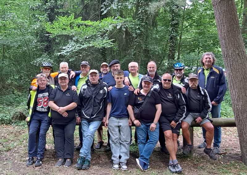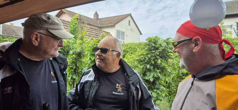 Zunächst trafen wir uns am Bahnhof Heiligenstein um das Grab unseres Webmasters Gerhard zu besuchen. Dort wurde für Gerhard ein Blumenstrauß niedergelegt und eine Schweigeminute gehalten. Anschließend fuhren alle in den Garten, wo uns Ludwig bereits mit dem Frühstück erwartete. Es gab Hackbrode Brötchen und Rührei. Da dachten schon manche, wir könnten eigentlich gleich hier bleiben. Aber der Präsi sprach ein Machtwort und mit Simon als Pfadfinder ging es auf die Strecke Lüttich – Gascogne – Lüttich.