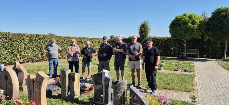 Dudenhofen geht goldenen Zeiten entgegen, wenn ein Hasehärn zum Ortsbürgermeister gewählt wird. Deshalb unternahmen wir am Vadderdaach ihm zu Ehren eine Sternfahrt mit dem Fahrrad durch die Verbandsgemeinde. Hervorragend ausgearbeitet und begleitet wurde die Tour von unserem Freund Boffel, denn es gab statt Plan A auch einen Plan B für die Pessimisten. Die Teilnehmer Rolle, Dribbl, Nobbl, Ketel, Erich, Steier-Michel, Harheiser Peter, Boffel, David, Oli, Saarlänner, Simon, Hi-Kai und ich wurden um 10:00h mit einem Pfälzer Buffet vom Präsi in seinem Domizil begrüßt. Aktuell herrschte Überflugverbot in Speyer Nord, so konnte er das Buffet draußen aufbauen. Das schöne Gruppenfoto in Präsis Garten wurde später dann auch für unsere WhatsApp Gruppe übernommen. Der Ketel bekam das Fahrrad von Walter und übernahm somit den Pannendienst und den Abschlepper. Nach einer kurzen Sicherheitsunterweisung für die E-Bike Fahrer starteten wir um 10:45h, um dann bei den Hundefreunden Otterstadt einzukehren. Da stieß dann noch Erle zu uns.Einen Nachteil gab es dort für die Allergiker…… die Polen flogen sehr tief. 6 Stein Bier später führte uns der Weg über Waldsee nach Schifferstadt mit Pause bei dem Kapellchen Maria Hilf. Versorgt mit Marille vom Boffel konnten wir auch mal die Prostatasättel unserer Räder vergleichen. Da gibt es welche für 15cm und auch für 30cm. Bei unserer Ankunft an der Waldfesthalle in Schifferstadt war viel los, aber wir konnten uns helfen und ruck zuck waren 2 Bänke aufgestellt. Bei Blasmusik, Bier, Wurst, Kaffee, Kuchen und schönem Wetter ließ es sich aushalten und mancher dachte an frühere Zeiten als er schon als Kind in der Waldfesthalle feierte. Der letzte Abschnitt führte uns durch die niedrige Unterführung an den Bahngleisen bei Schifferstadt. Leider befolgte unser Sicherheitsbeauftragter Boffel seinen eigenen Ratschlag nicht, besser an dieser Stelle vom Rad abzusteigen, nicht und zog sich auf dem Kopf eine blutende Schürfwunde zu. Ersthelfer Rolle sorgte für die ärztliche Versorgung. Dann wurde unser Präsi von einer Windböe erfasst und flog in die Brennnessel. Aber gemäß unserem Motto „immer weiter, immer weiter“ wollten wir noch einen Abschlussschorle bei Steffi trinken. Denn wie steht es in Psalm 34 geschrieben? Die Durstigen wollen gestillt werden. Um 16:47h trafen wir schließlich im Waldschlössel ein und tatsächlich wurden wir von unserer Lieblingswirtin Steffi begrüßt. Sie war uns gegenüber sehr offenherzig und so hüpften auch Hans und Franz vor Freude. Nur die Waldschlössel Chefin war im Streß. Wenn sie raus zu den Gästen ging, waren die Bedienungen drin. Aber egal, das Essen war gewohnt gut. Als Letzter gesellte sich Ludwig mit Ben zu uns und wir konnten die Erlebnisse Revue passieren lassen. Fazit: Es war wieder sehr schön gewesen und wir hatten kaum Ausfälle. Der Präsi verlor sein Schutzblech, das kann der Nick aber wieder anschweißen und der Dribbl musste mal kurz sein Rad suchen. Darauf einen Ouzo von Steffi. So sehn wir uns nicht auf dieser Welt, so sehn wir uns in Lingenfeld. Wir kehrten wieder zurück in unser Heim, wo mancher dann alleine schlafen musste, weil die Frau zuhause war.