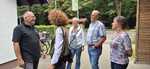 Wir wollten zwar in der Wildnis übernachten, aber so wild sah es gar nicht aus. Dank der ständigen Pflege durch unseren Präsi, war der Garten voll im Schuss und so mussten wir für unsere Übernachtung nur geringfügig was herrichten. Pünktlich waren: Präsi, Erle, Nobbl, Werner, Steier-Michel, Diddl und ich. Später kamen noch David und Ludwig mit Ben. Da es sich im kleinen Team gut arbeiten ließ, waren die Zelte schnell aufgebaut. Nur für das Dach musste Werner etwas Gewalt anwenden. Ein besonderes Lob galt dem Erle, der die Spinnweben im Sanitärbereich entfernte. Dr. Diddl war der DJ und im Geiste von Woodstock feierten wir unser Open Air Festival. Um 18:30h meldeten wir dem Präsi Vollzug. Die Fahne hing und das Zelt stand. Der Werner war dann unser Mann am Grill, allerdings nur am kleinen Grill, da aufgrund des Klimawandels die Thujahecke noch trocken war. Da fehlt nur ein Funke und der Garten steht in Flammen. Während dem gemütlichen Teil des Abends wurden aktuelle Ereignisse aus dem 2. Weltkrieg erzählt und was man in der Nachkriegszeit erlebt hatte. Die wichtigste Nachricht war, dass das Waldschlössl nicht zu Wohnungen umgebaut wird. Das hat die Chefin dem Präsi versichert, da sie noch einen 5 Jahres Vertrag hat. Das Wetter hielt und wir schwoften bis nach Mitternacht.